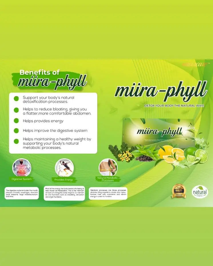 Miira-Phyll is a meticulously crafted blend of botanical extracts and essential nutrients designed to support your body’s natural detoxification processes.